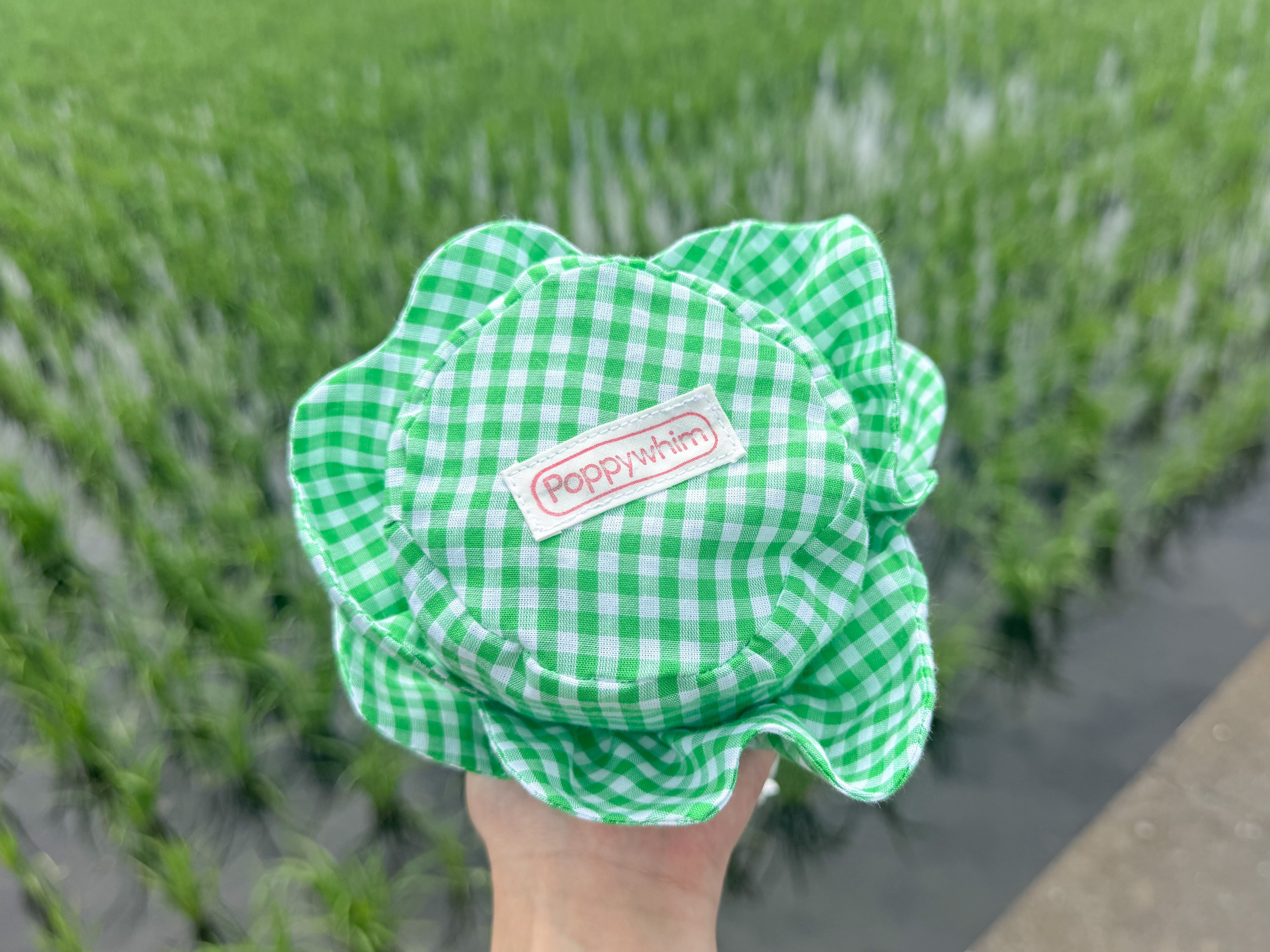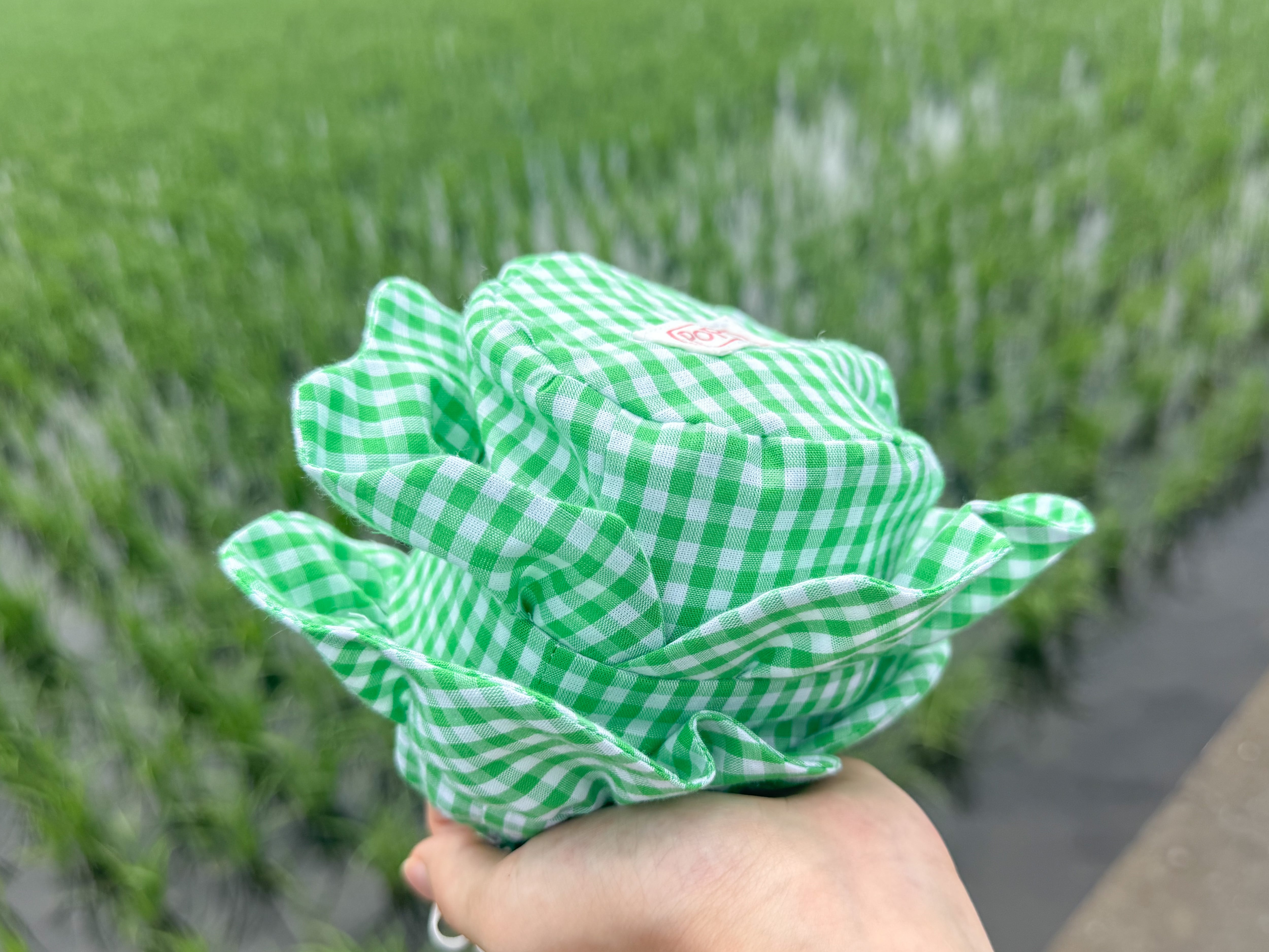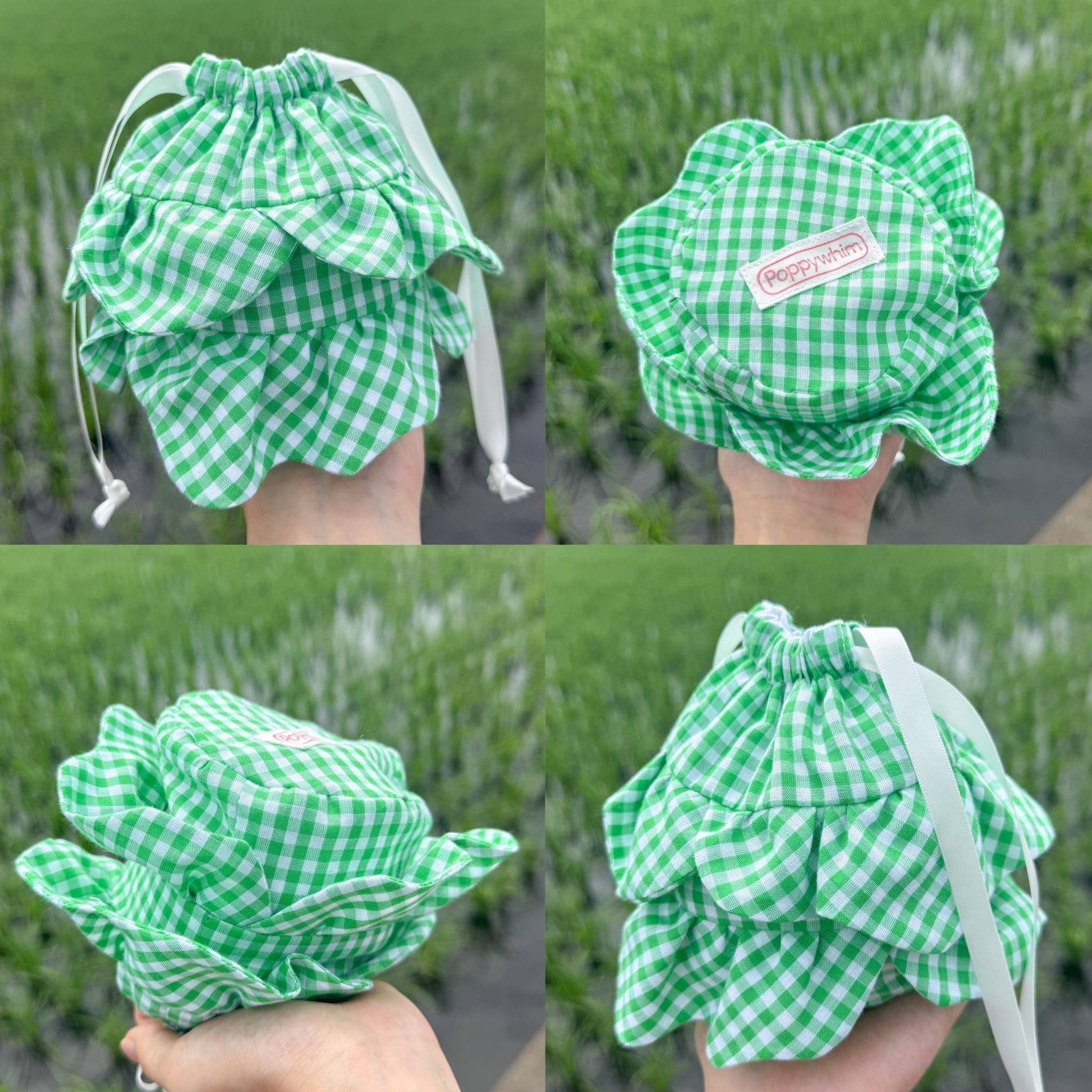 フリルをキャベツの葉に見立てた巾着ポーチ。
