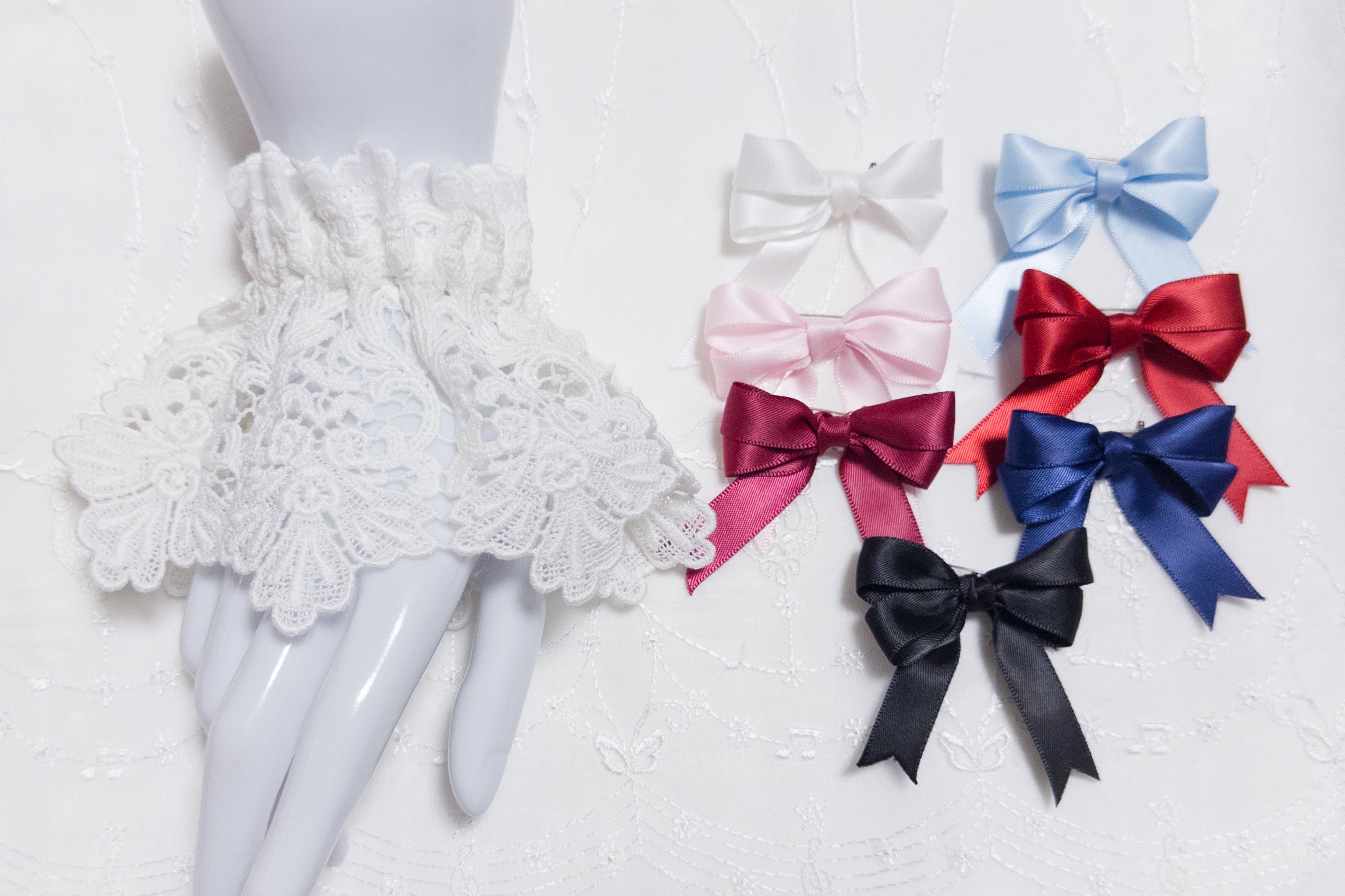 ケミカルレースのお袖留め (リボン2色セット)