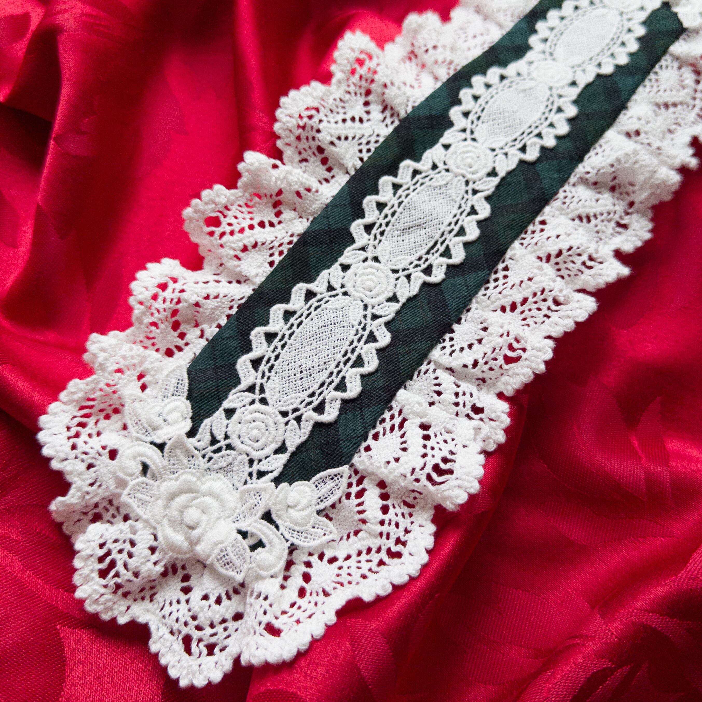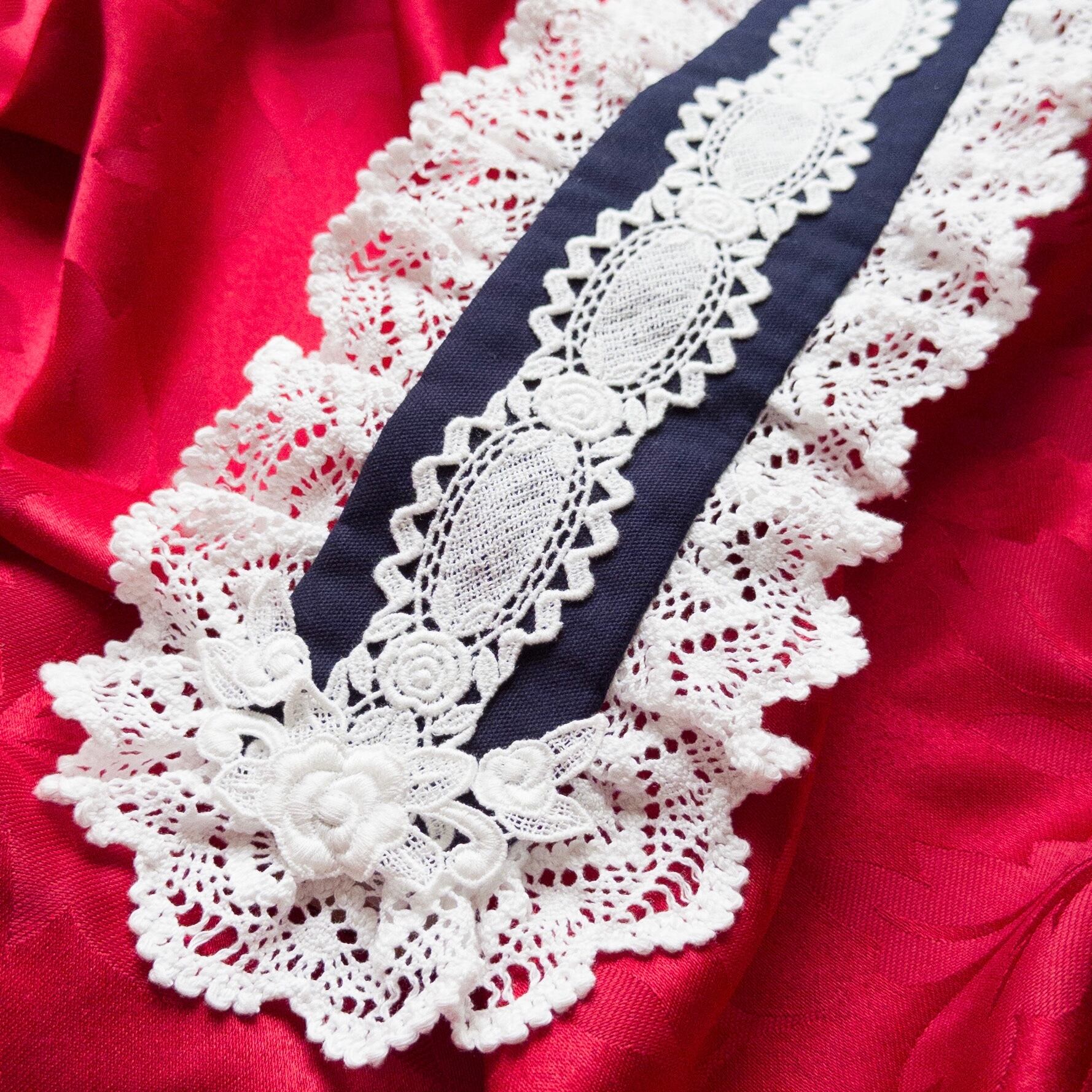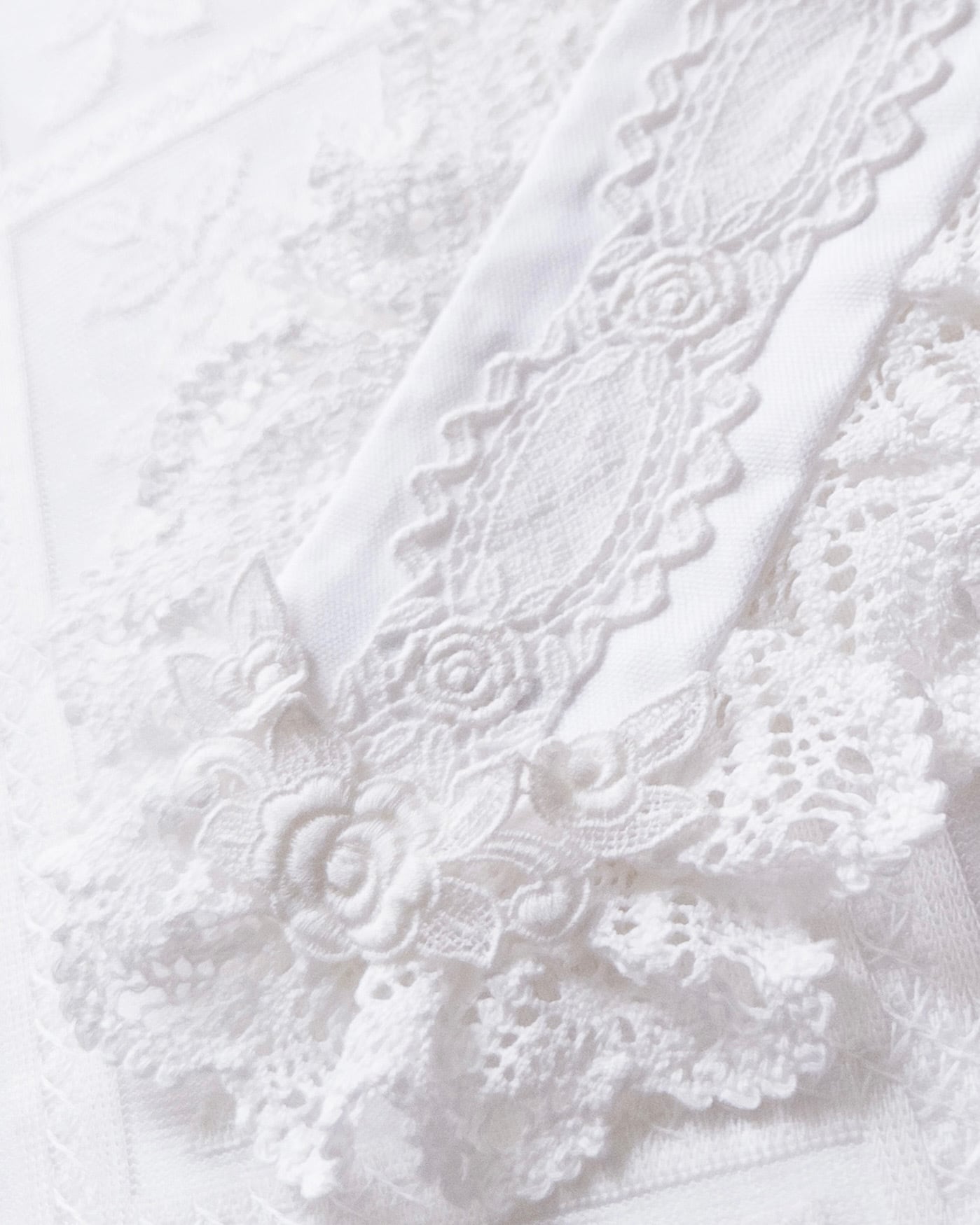 バラ柄のケミカルレース2種を中央とサイドに使用した、シンプルで美しいヘッドドレス。