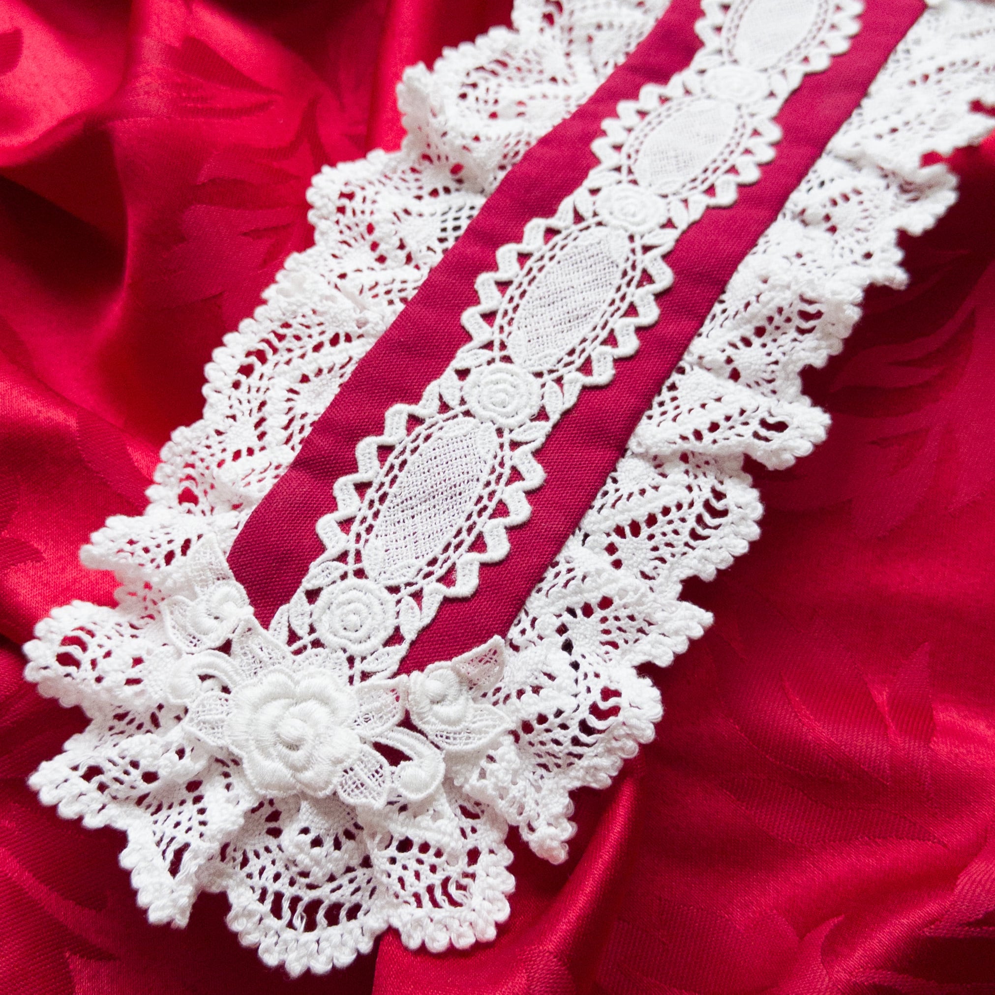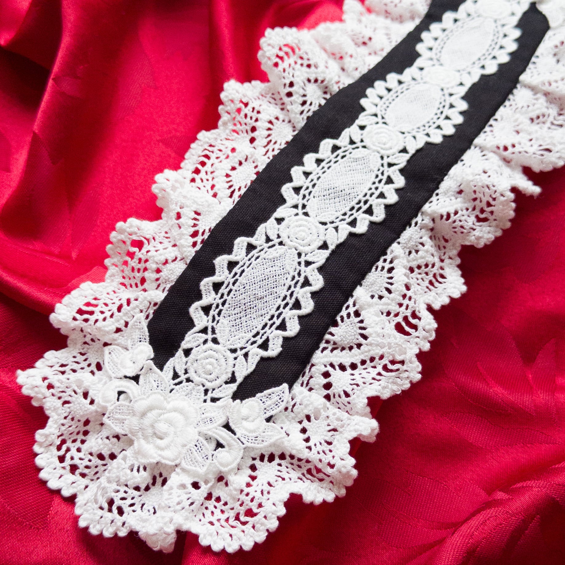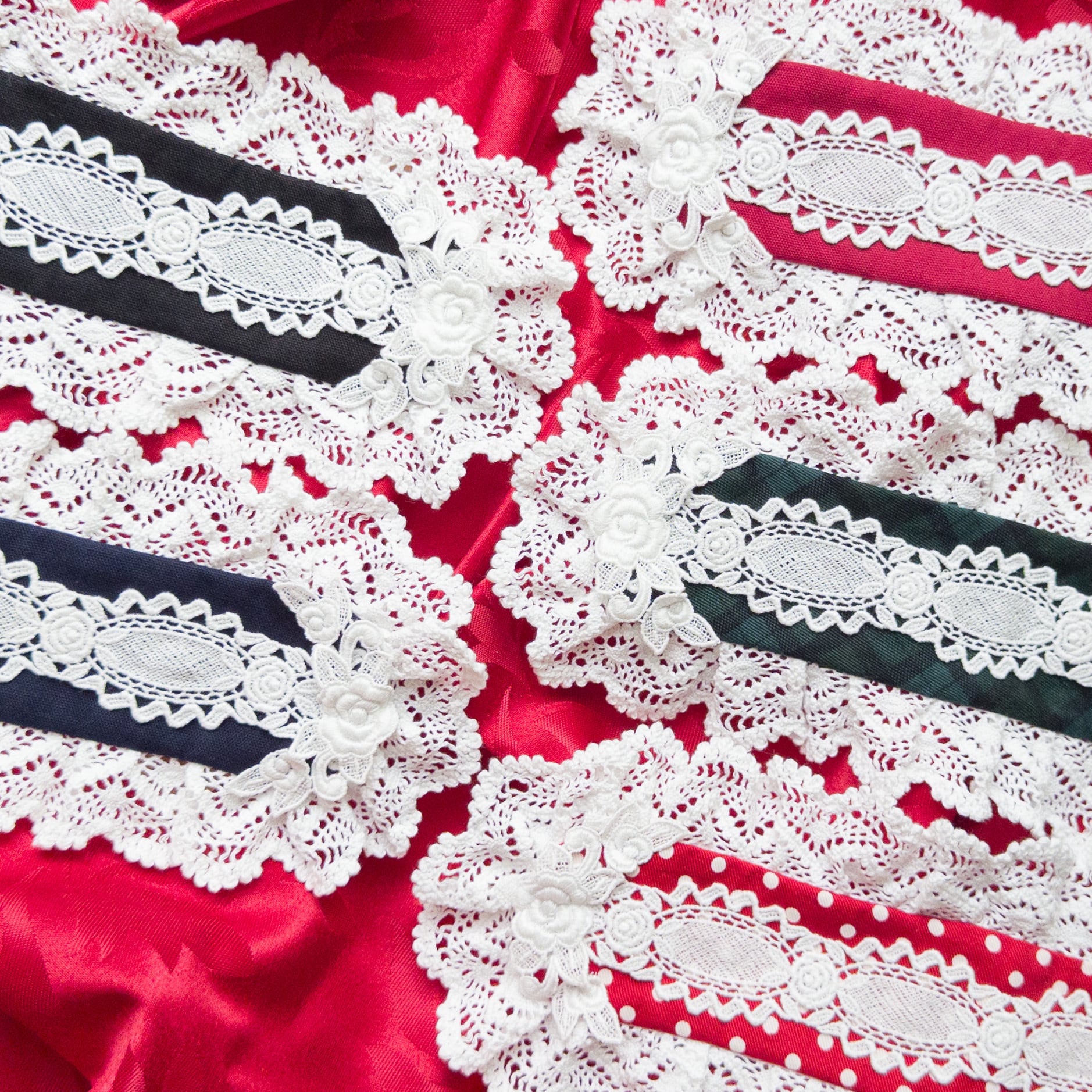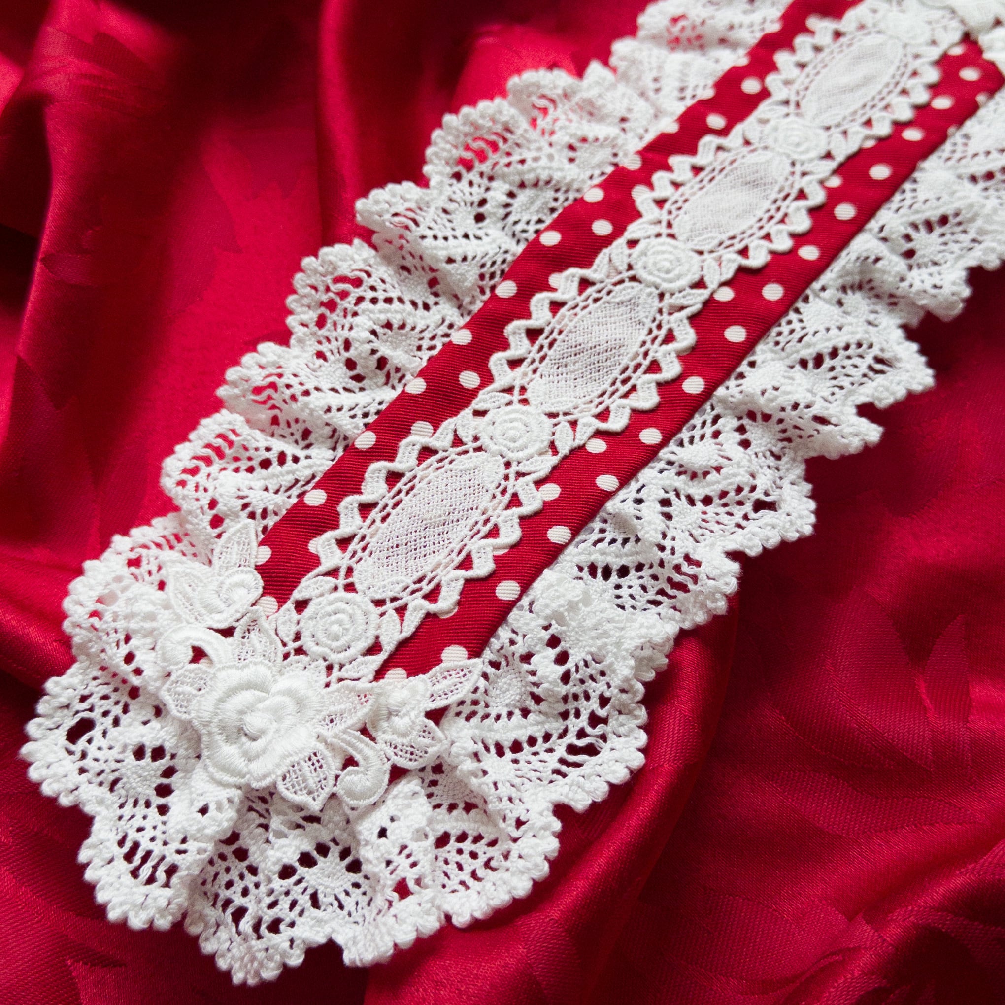 バラ柄のケミカルレース2種を中央とサイドに使用した、シンプルで美しいヘッドドレス。