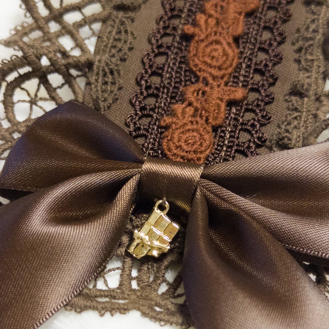 チョコレート細工のようなケミカルレースを組み合わせたヘッドドレス。