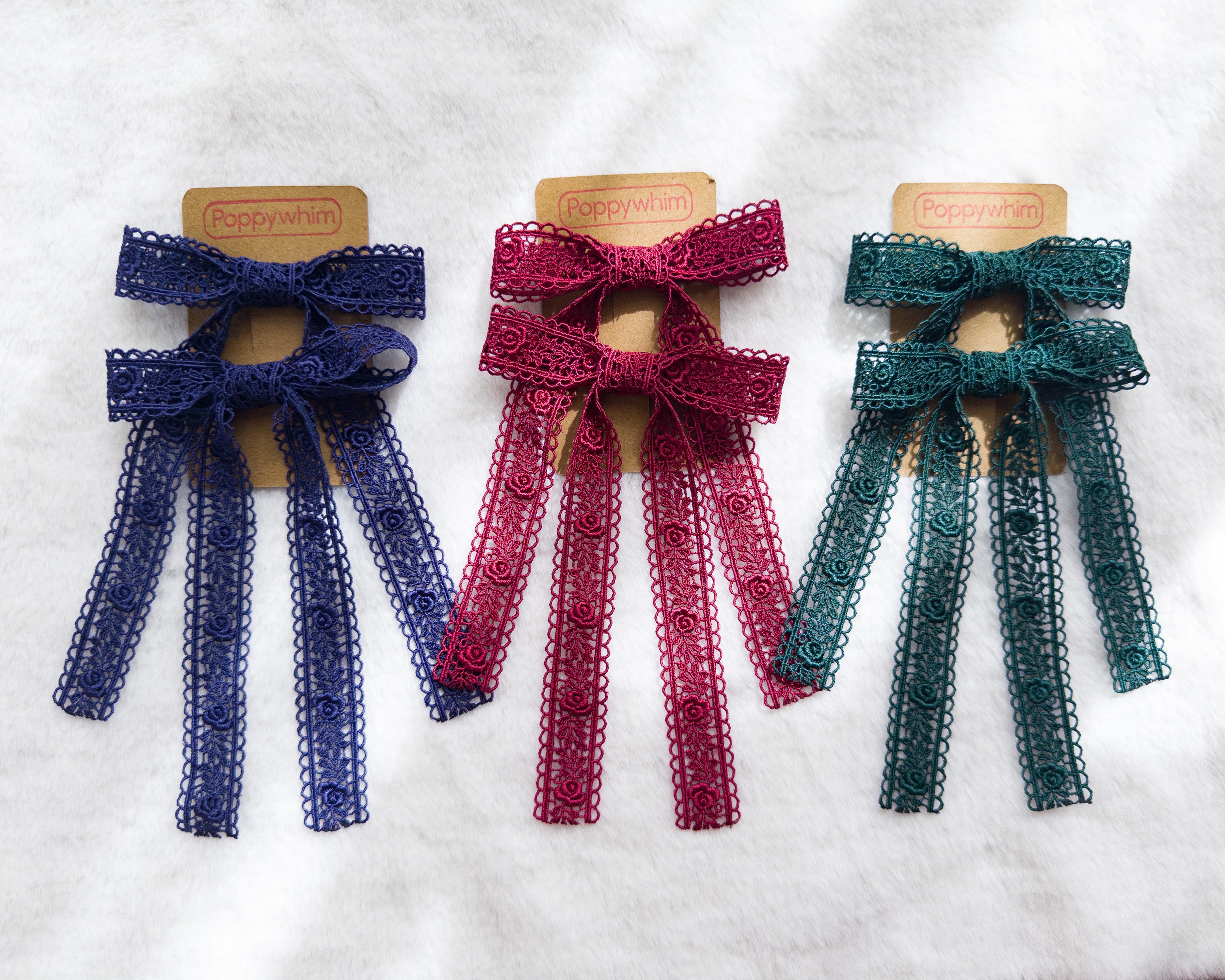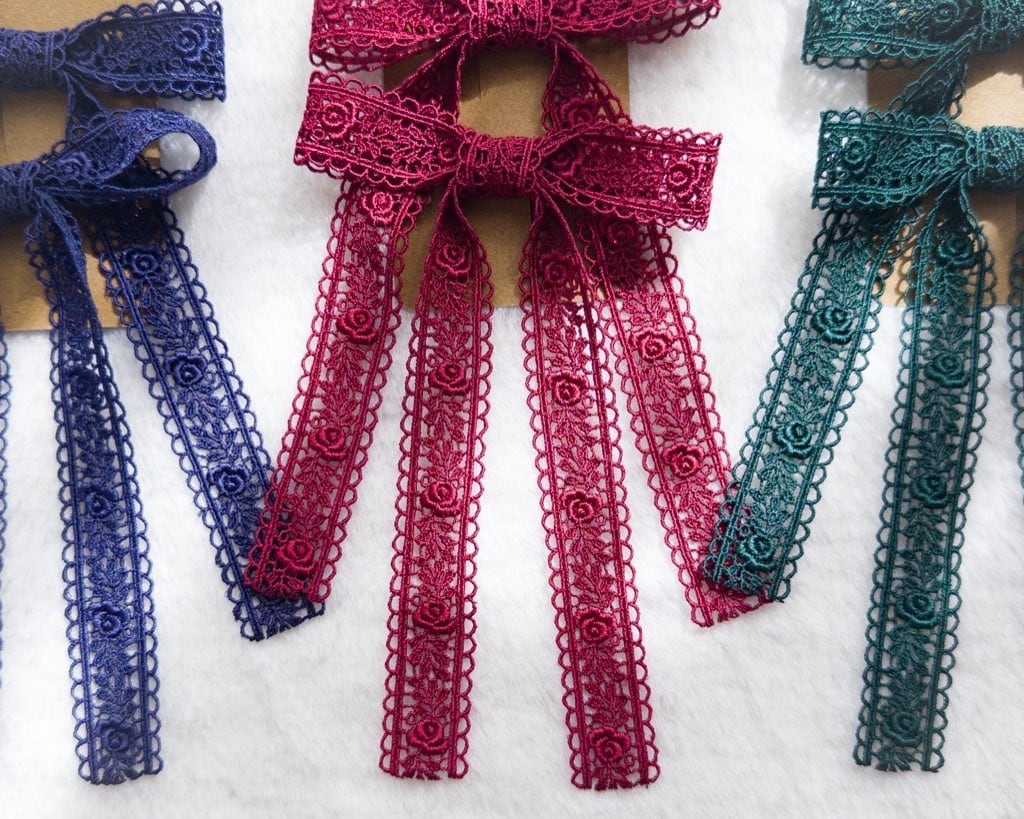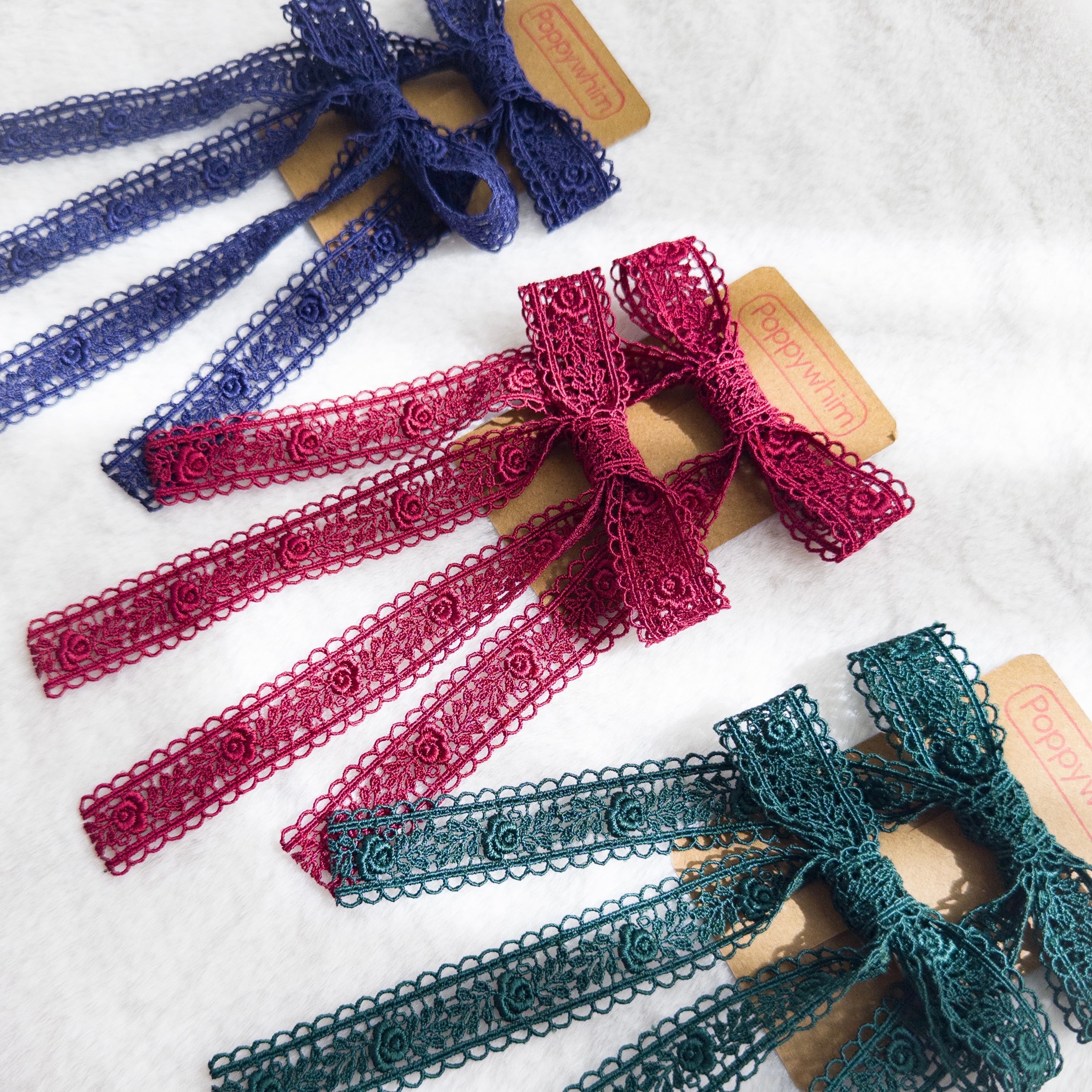 光沢感のあるバラ柄のケミカルレースを使用したヘアクリップ。